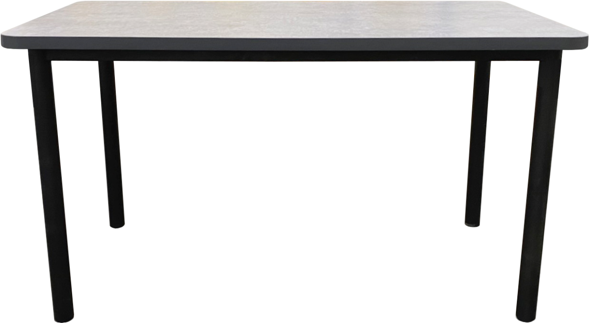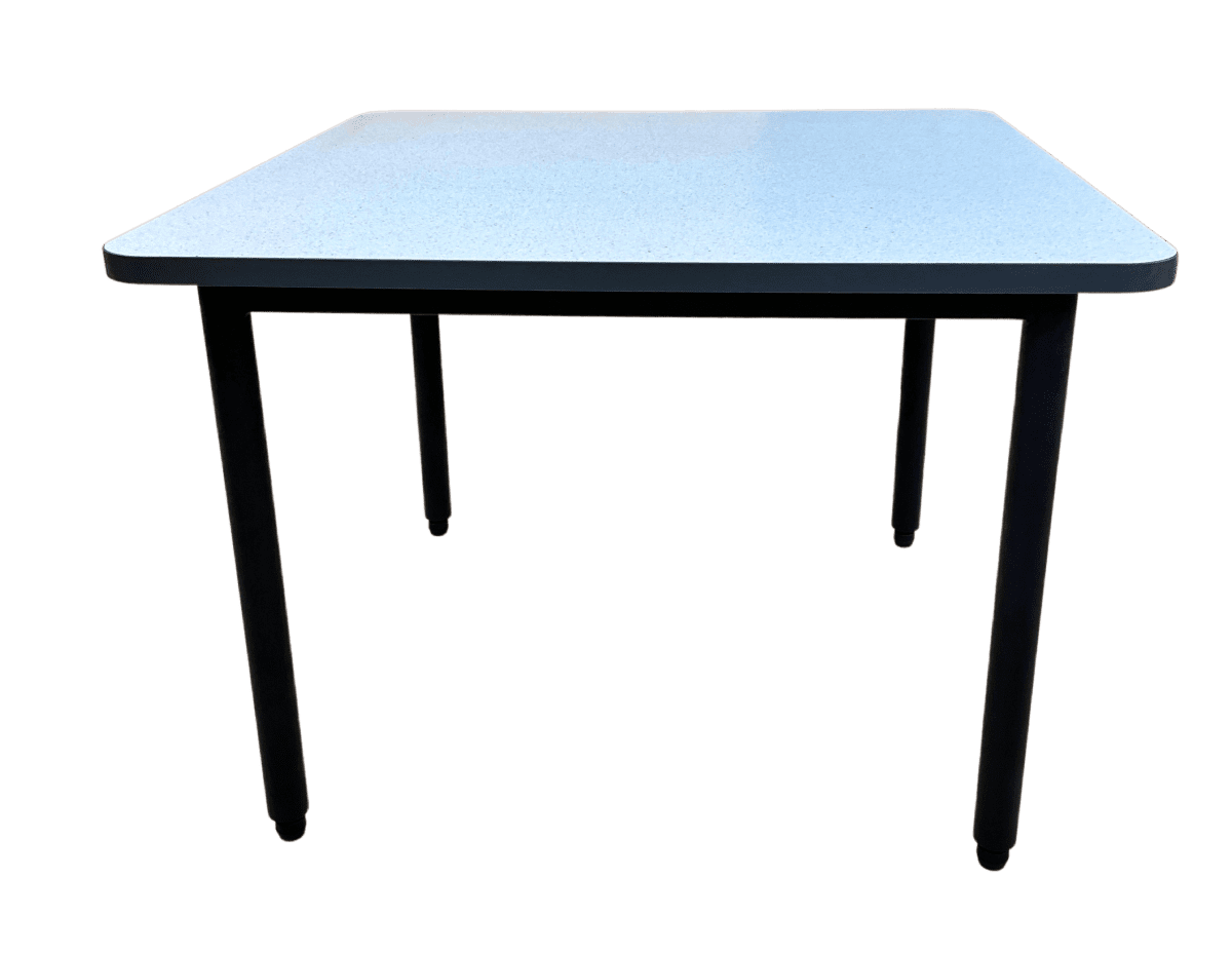 HD Steel Frame with 2” Round Legs with screw-in adjustable levelers. 1 1/8” HPL Top complete with radius corners w/2mm PVC Edge